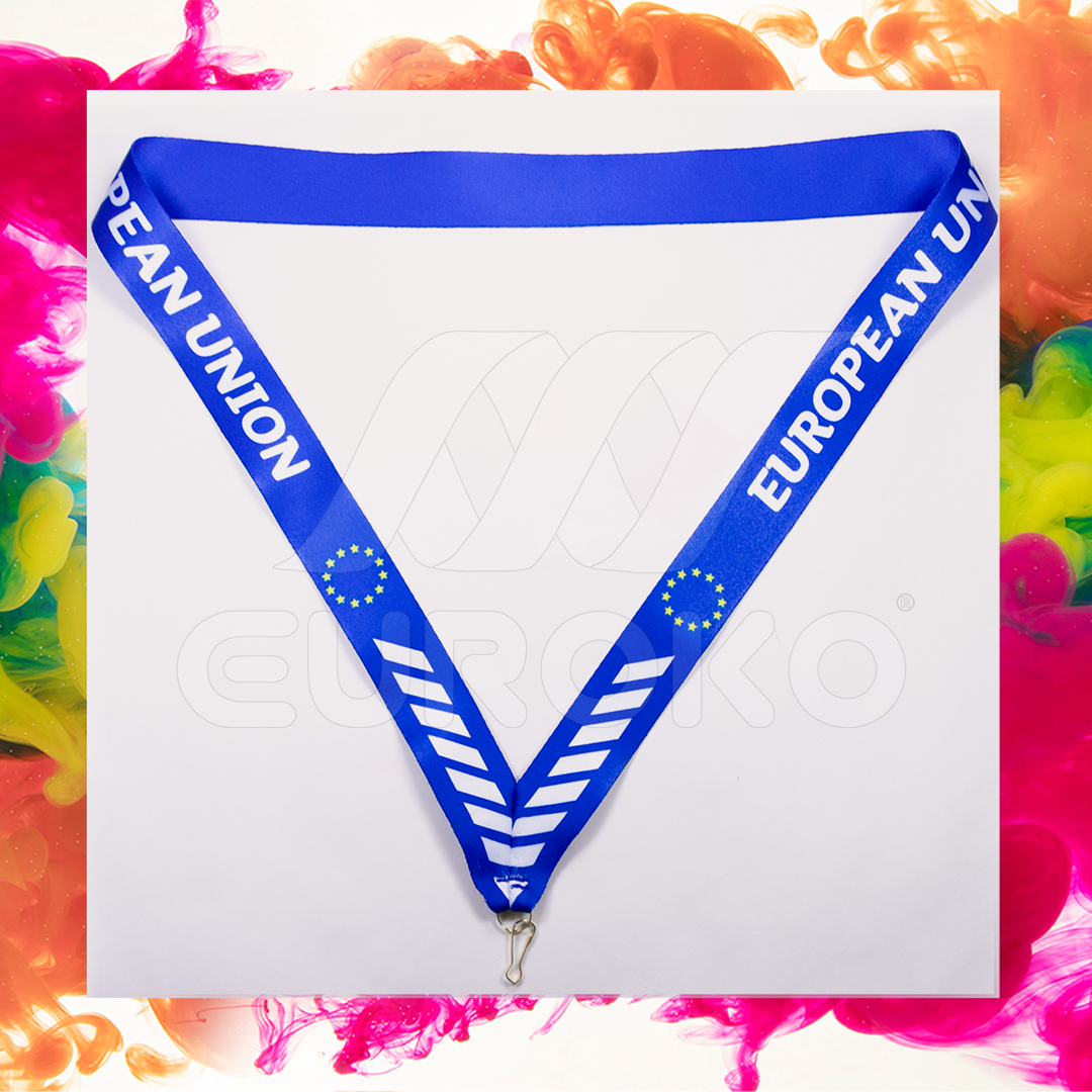 Custom medal lanyards under short period of time. Is the price important? If you need ribbons for medals, choose Euroko! Do you organise an event? Give customized neck lanyard with medals to the competitors. We have different types of neck ribbons: configure the product and choose the proper size, material and accessories and make your event unforgettable.