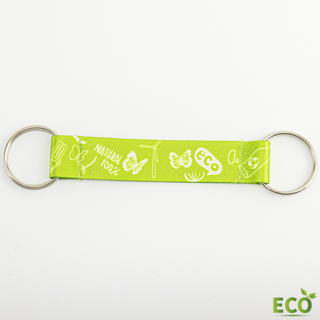 Our recycled keyrings are produced from RPET material, so their production means environmentally friendly and green solution.