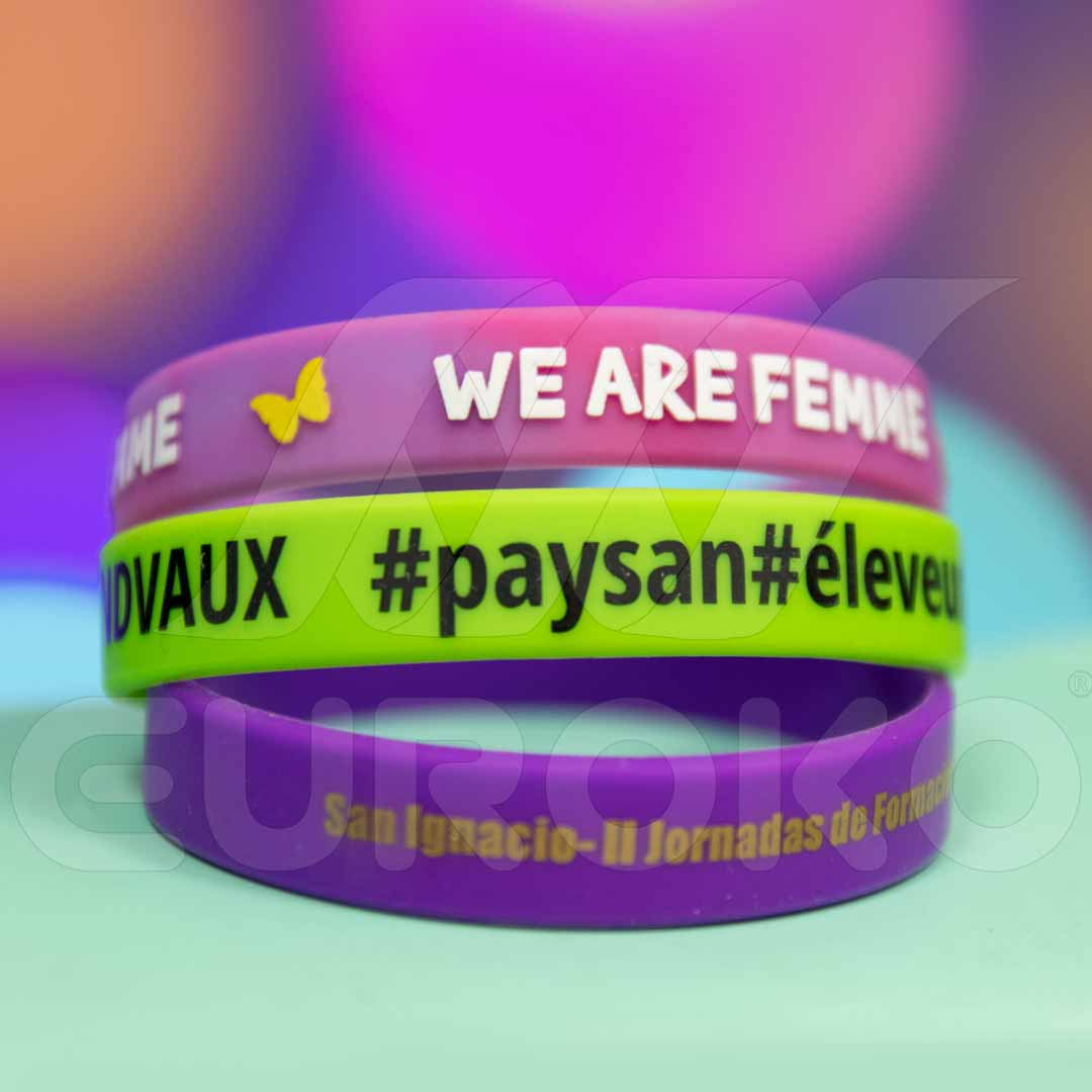 When it comes to a social event our silicone bracelets will be the best choice. They're made out of soft silicone, therefore they're easy to wear and stretch-resistant. We have different types of silicone bands.