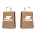 Barna színű sodortfüles ajándéktáska logóval az Eurokotól! Egy exkluzív csomagolás minden ügyfél számára meggyőző!