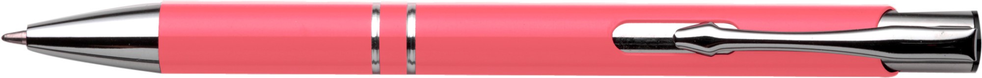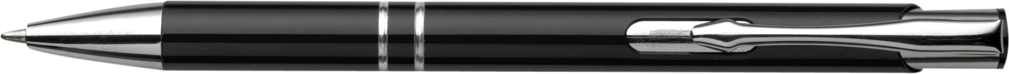 Deze gepersonaliseerde metalen balpen combineert elegante aluminium constructie met professionele functionaliteit, ideaal voor uw promotiecampagnes. Met een glanzende gelakte afwerking en volledig metalen componenten biedt deze bedrukte balpen een hoogwaardige uitstraling die uw merk perfect vertegenwoordigt. Verkrijgbaar in 10 huiskleuren (zwart, donkerblauw, groen, oranje, roze, rood, zilver, wit en geel) en bedrukbaar met uw logo in maximaal 2 kleuren, is dit de perfecte keuze voor bedrijven die op zoek zijn naar een effectief en duurzaam relatiegeschenk.
